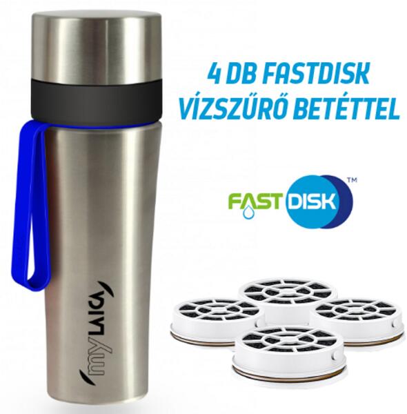 myLAICA komplett csomag 4 hónapra (vízszűrő kulacs 1+3 db AJÁNDÉK FAST DISK szűrővel, szálcsiszolt rozsdamentes acél, kék szilikon pánttal, 0, 55 liter) (BR60C06+FD03A01)